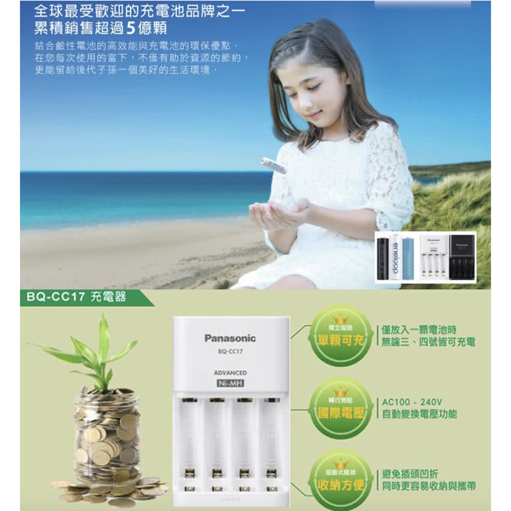 附發票 Panasonic Eneloop充電組 BQ-CC17+4號2顆電池套裝 (標準款)