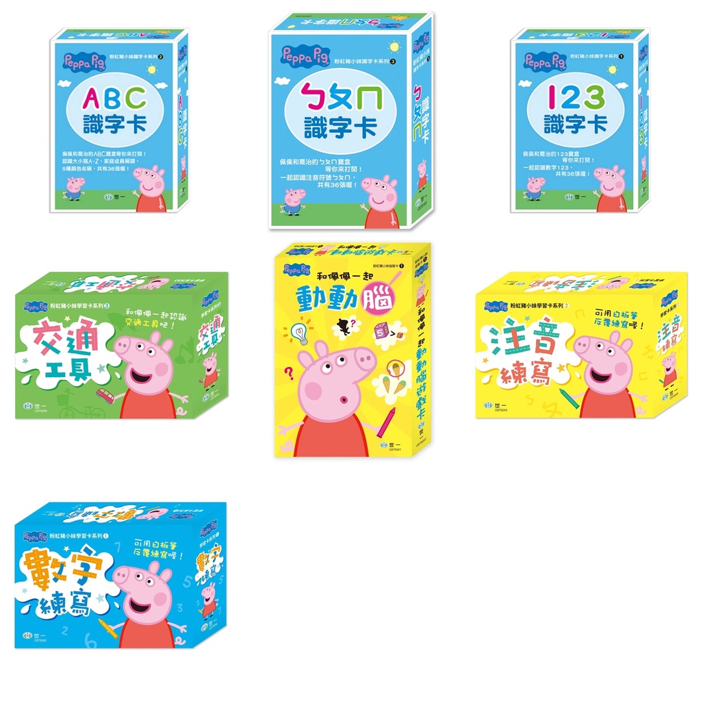 ✨現貨✨《世一》粉紅豬和佩佩 一起動動腦遊戲卡可愛動物數字練寫注音練寫交通工具學習卡 123 ABC ㄅㄆㄇ 識字卡C