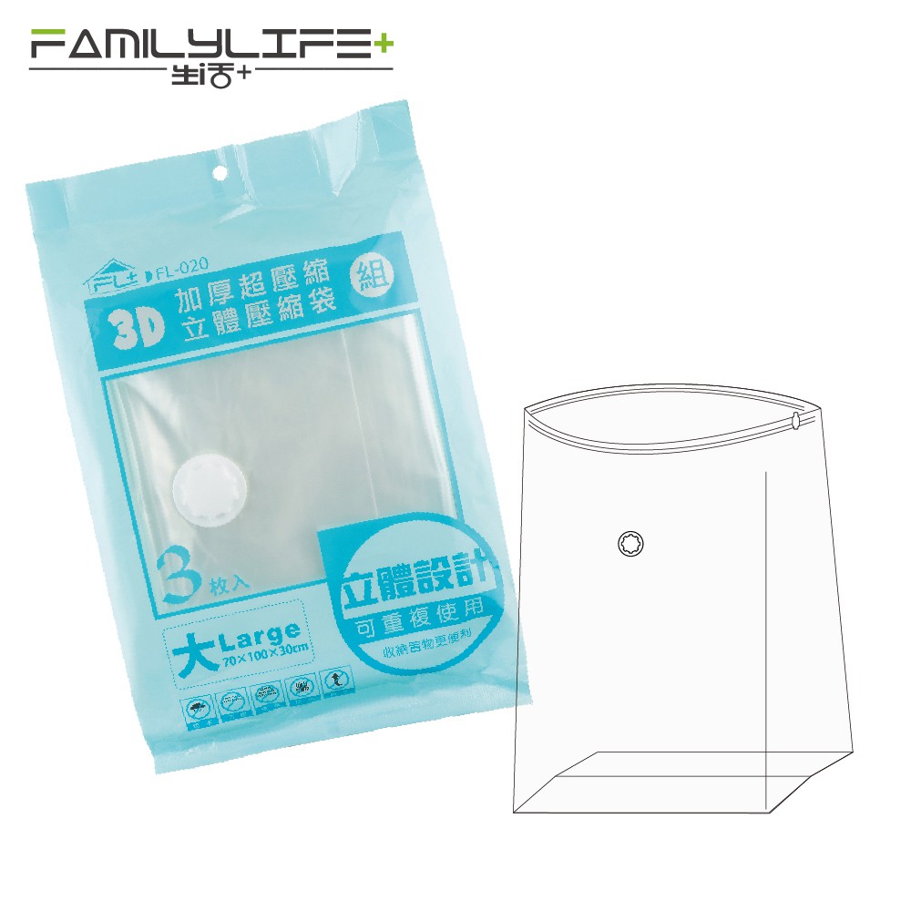 【FL生活+】3D加厚超壓縮立體壓縮袋-L號 真空壓縮袋 真空收納袋 可重覆使用 棉被收納袋 衣櫃收納 衣物收納