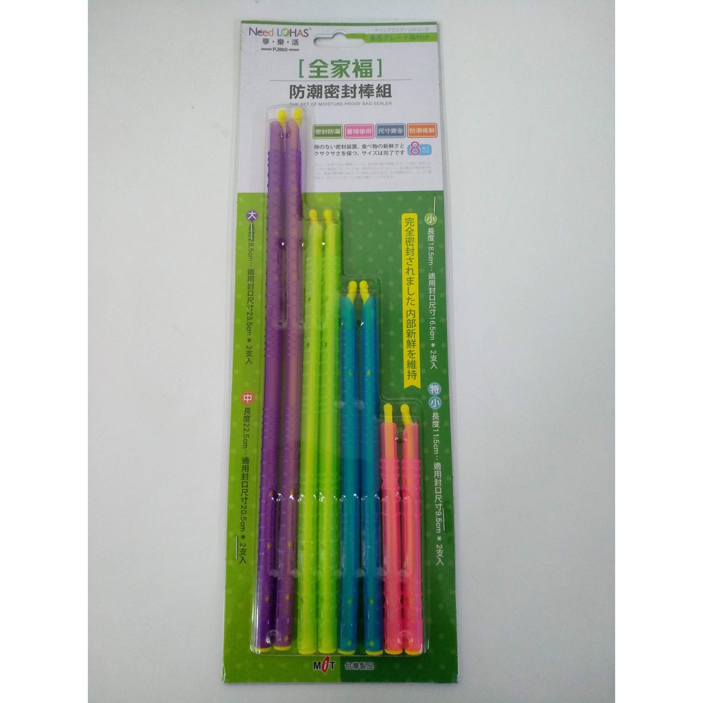 玲瓏小舖2F【全家福 防潮密封棒 8入 台灣製】防潮棒 密封棒 密封夾 尺寸齊全 重複用 環保 保鮮 防漏 食品保存