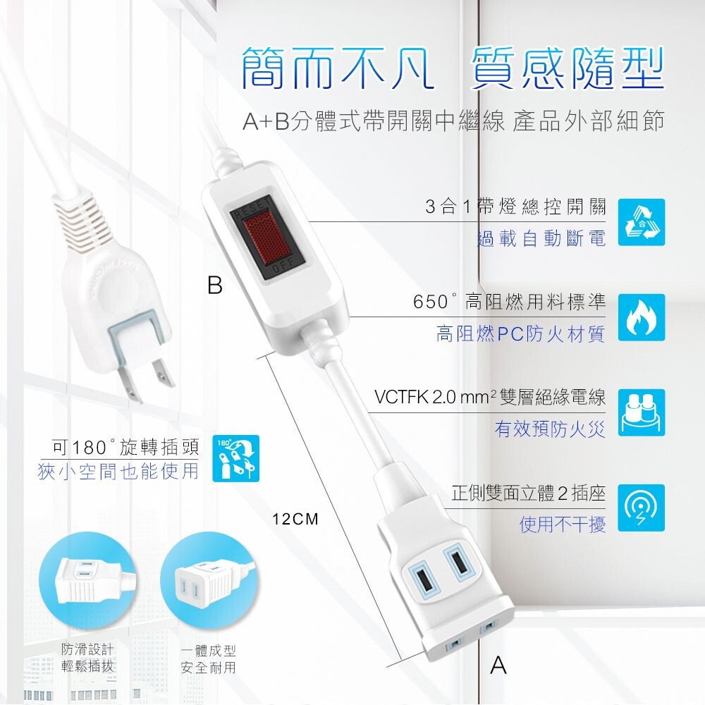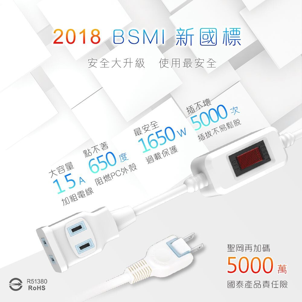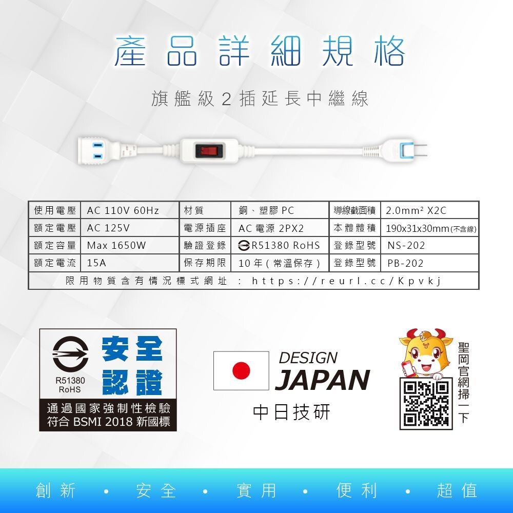 動力公牛 旗艦型任意轉2插延長中繼15A【PB-202】