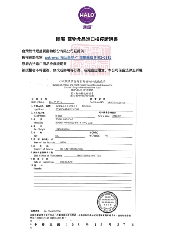 ~Petroyal~ Halo 嘿囉 成貓 無穀鮮新雞肉燉豌豆+鷹嘴豆 3lb 6lb 貓飼料 最接近鮮食的乾糧 無穀