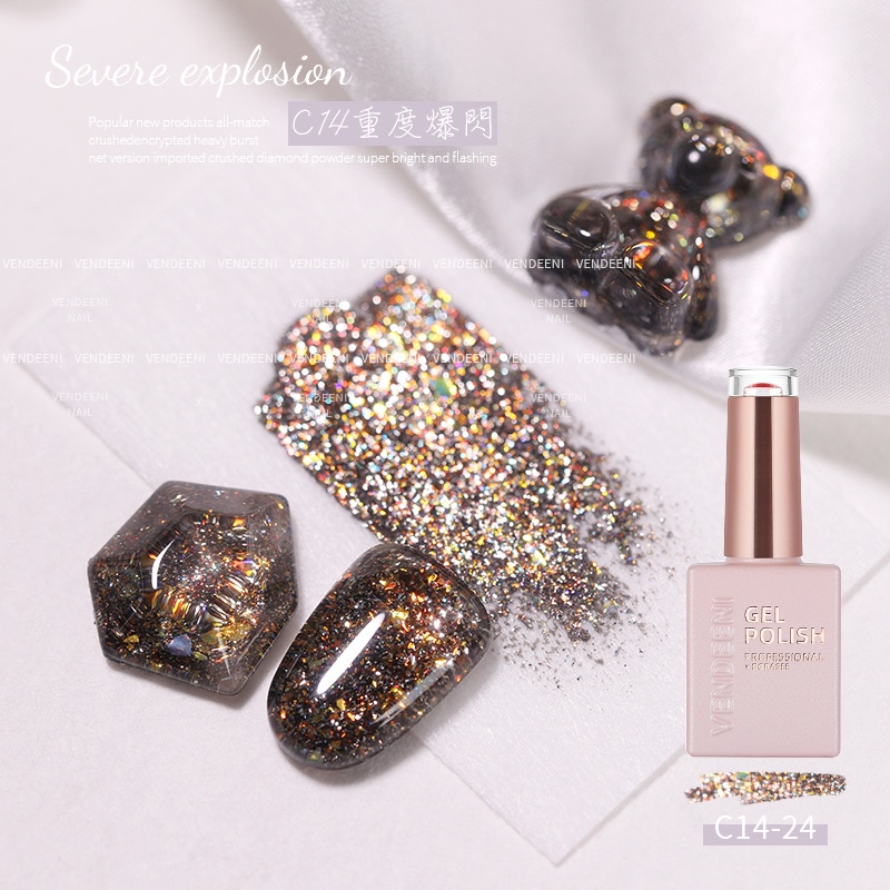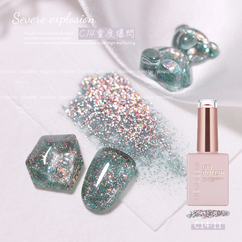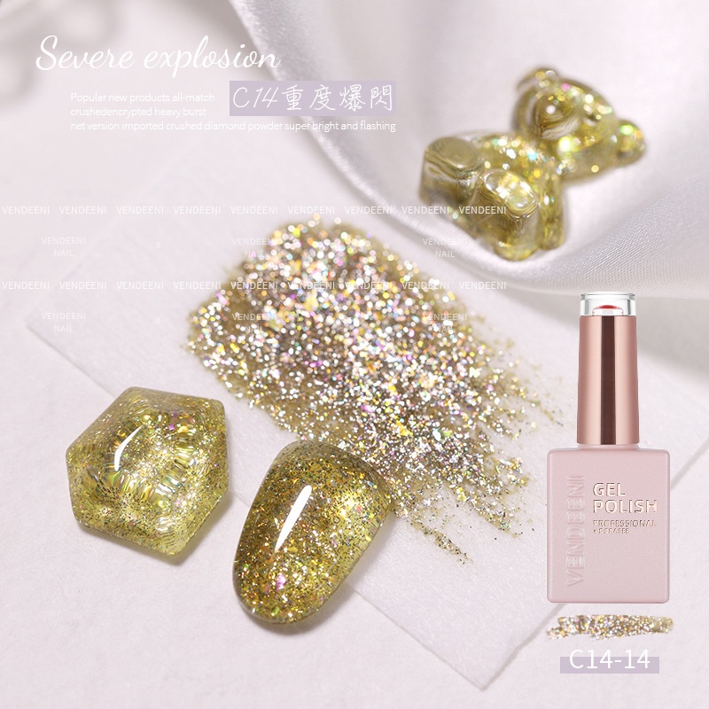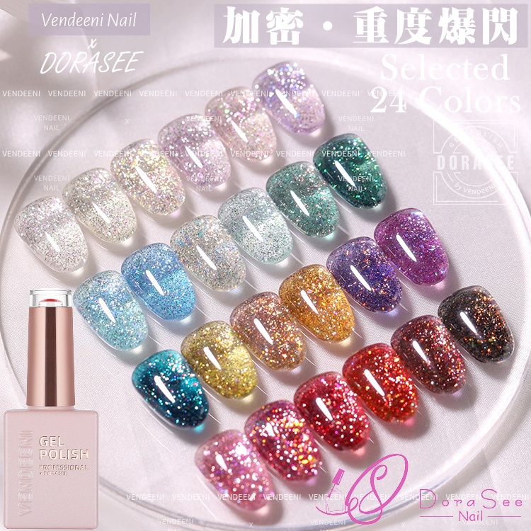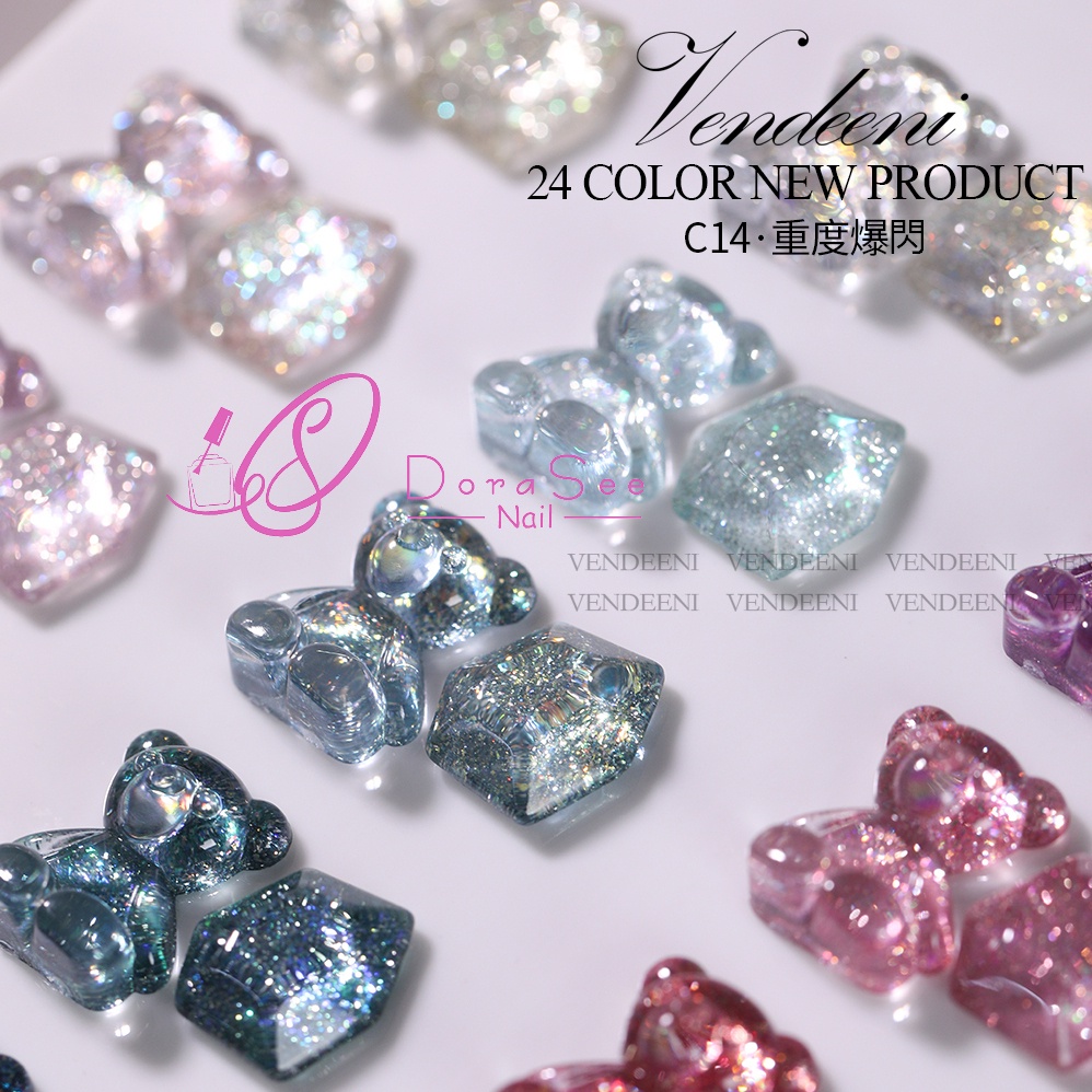 VENDEENI 重度爆閃膠 光撩膠 美甲 凝膠 甲油膠 光撩指甲油 透色閃粉膠七彩鉑金膠碎鑽膠 C14 DORASEE