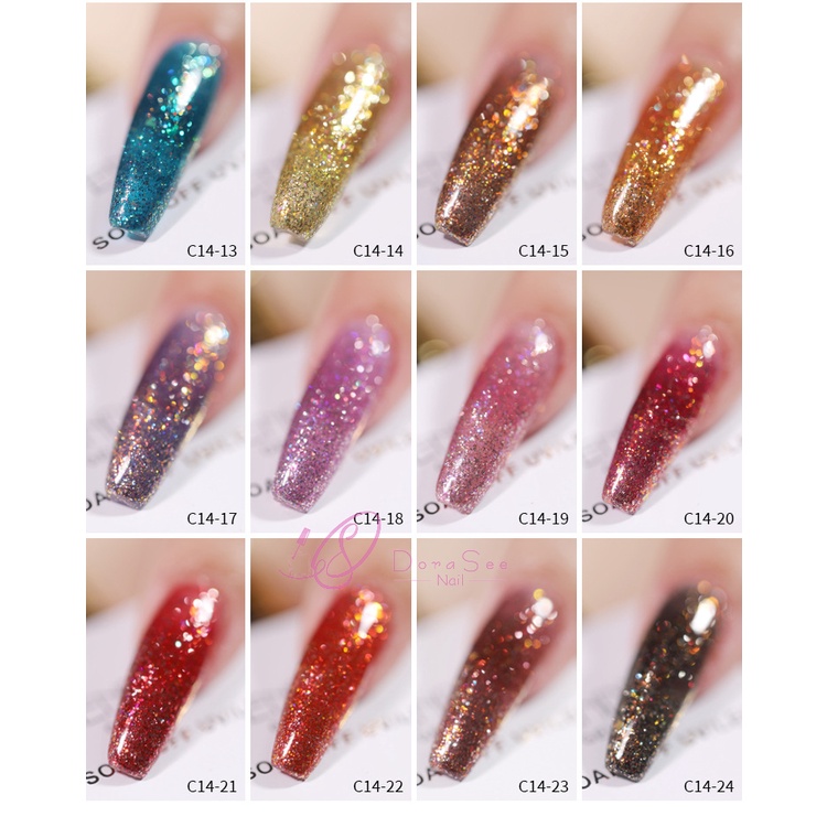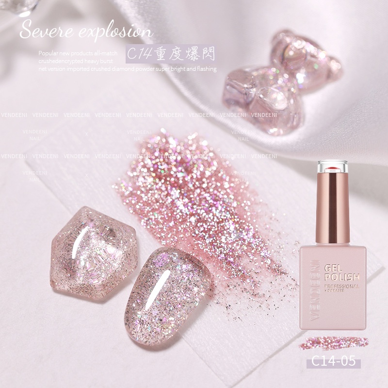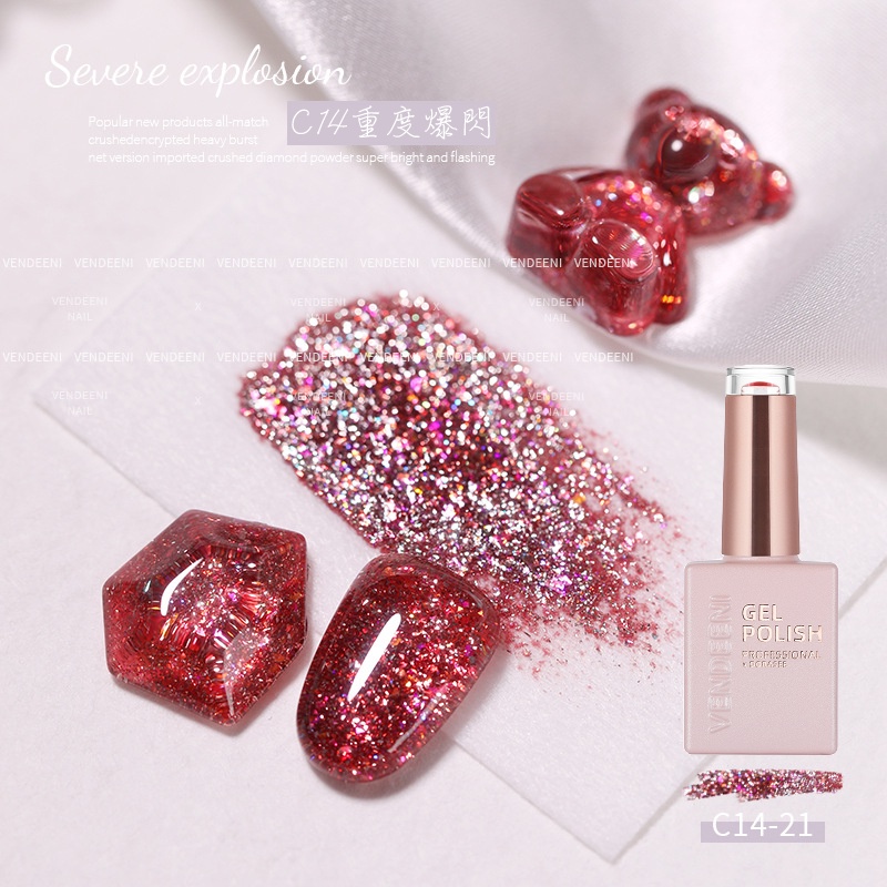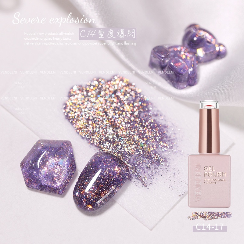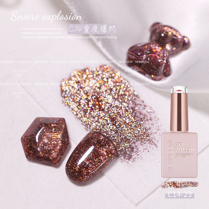 VENDEENI 重度爆閃膠 光撩膠 美甲 凝膠 甲油膠 光撩指甲油 透色閃粉膠七彩鉑金膠碎鑽膠 C14 DORASEE