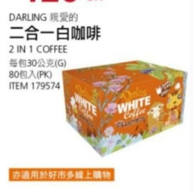好市多 親愛的白咖啡二合一 (無糖) 30g*80包 #179574