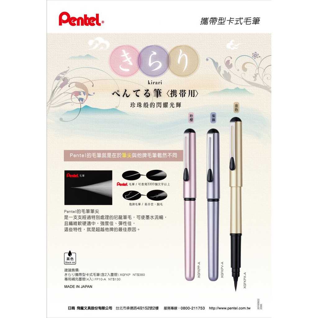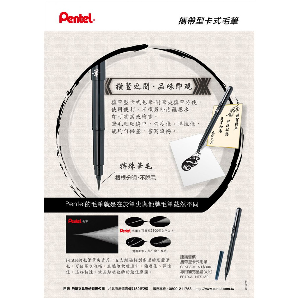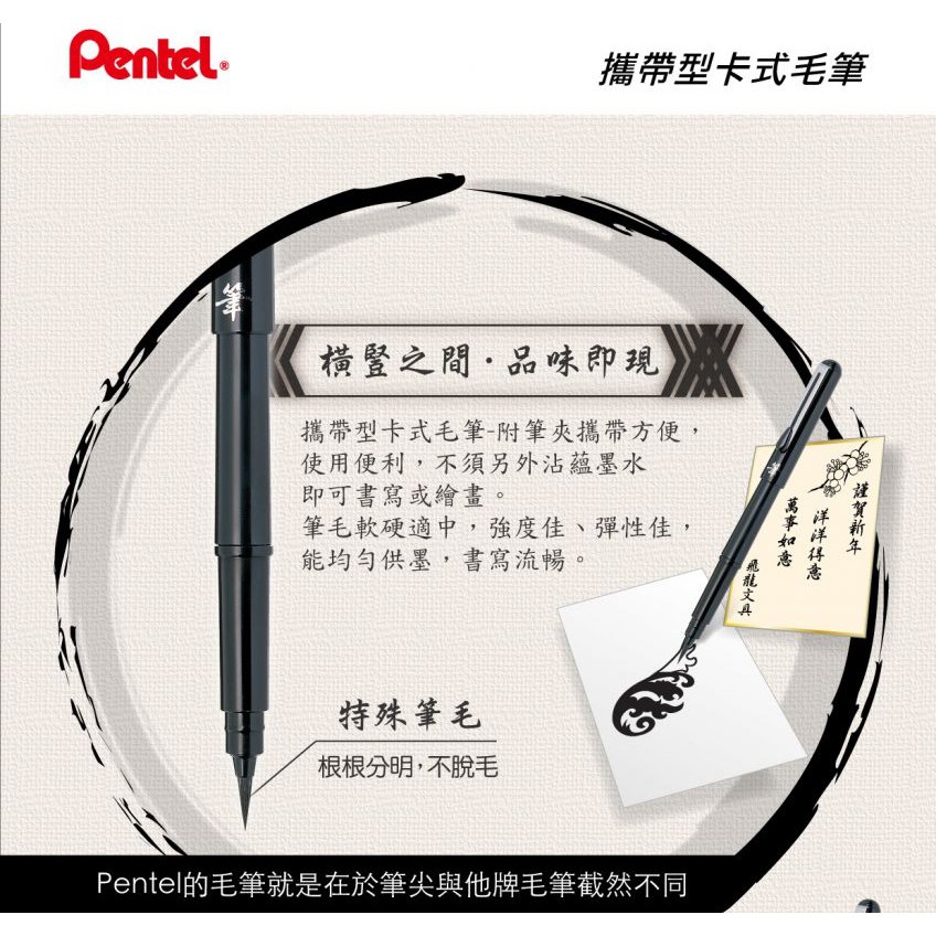 【茂松文具鋪】PENTEL 飛龍 XGFKP 攜帶型卡式毛筆-附補充墨管