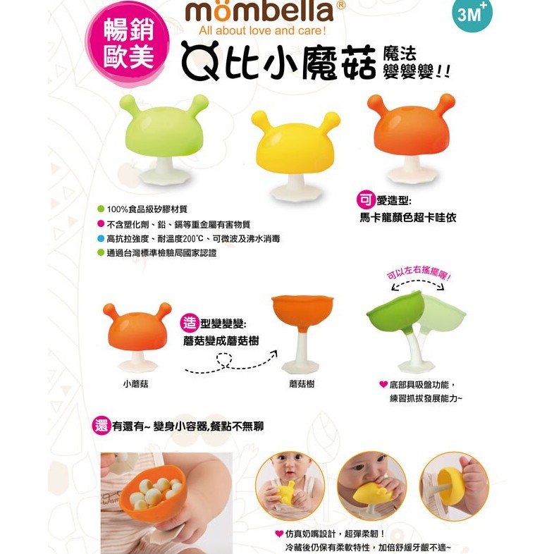 英國 Mombella Q比小蘑菇固齒器 新品上市 紫芋舒芙蕾 奶油爆米花