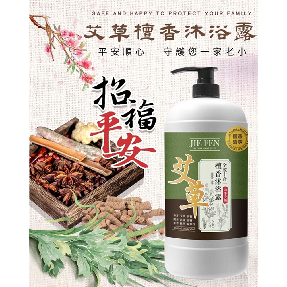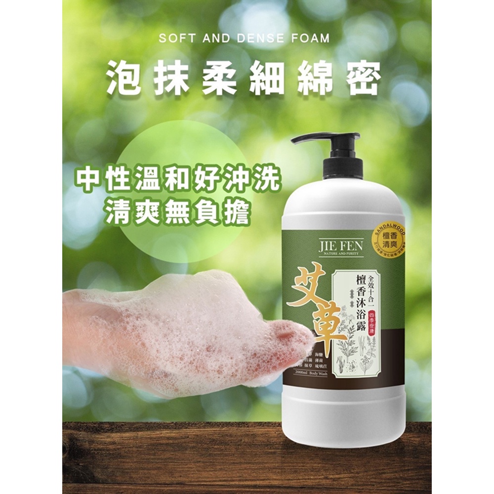 【Jie Fen潔芬】艾草檀香沐浴露 2000ml 大容量|草本洗沐|全家適用|溫和不乾澀|台灣製|除穢淨身