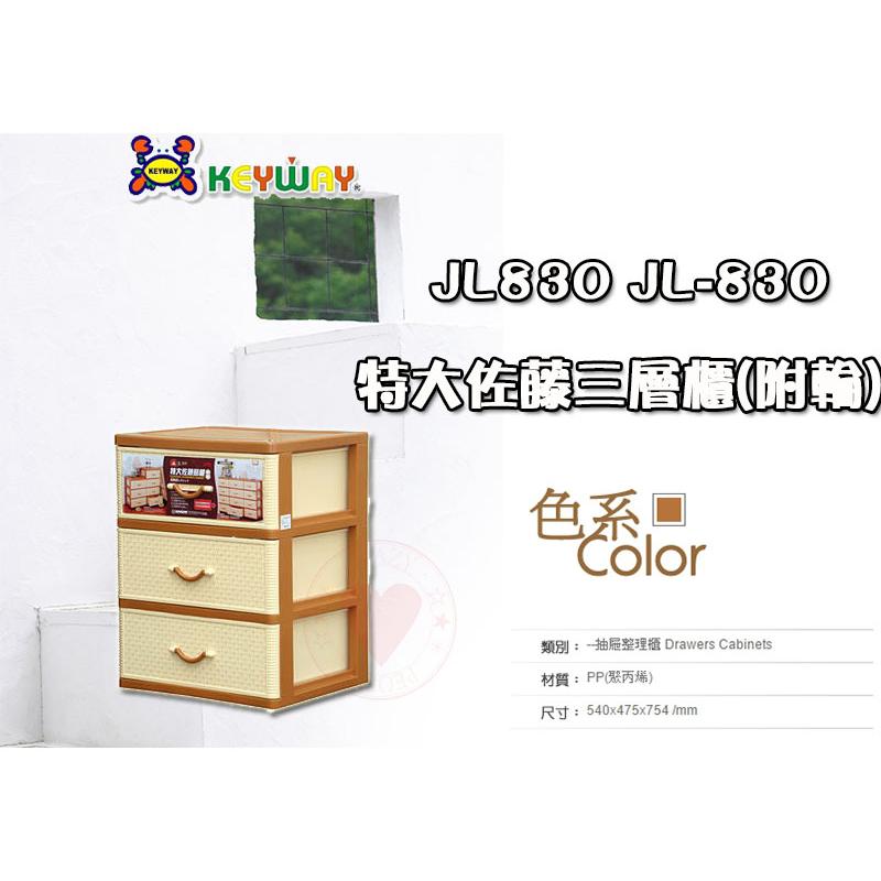 免運 特大佐藤三層櫃(附輪) JL-830 KEYWAY 置物櫃 層櫃 收納櫃 抽屜整理櫃 衣櫃 JL830