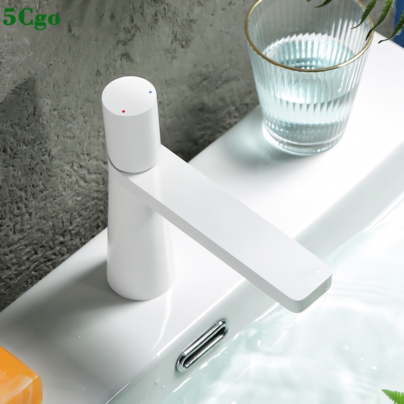 5Cgo.【宅神】白色冷熱二合一水龍頭單孔全銅龍頭衛生間洗臉盆洗手池臺上盆龍頭北歐簡約設計師推薦651443429760