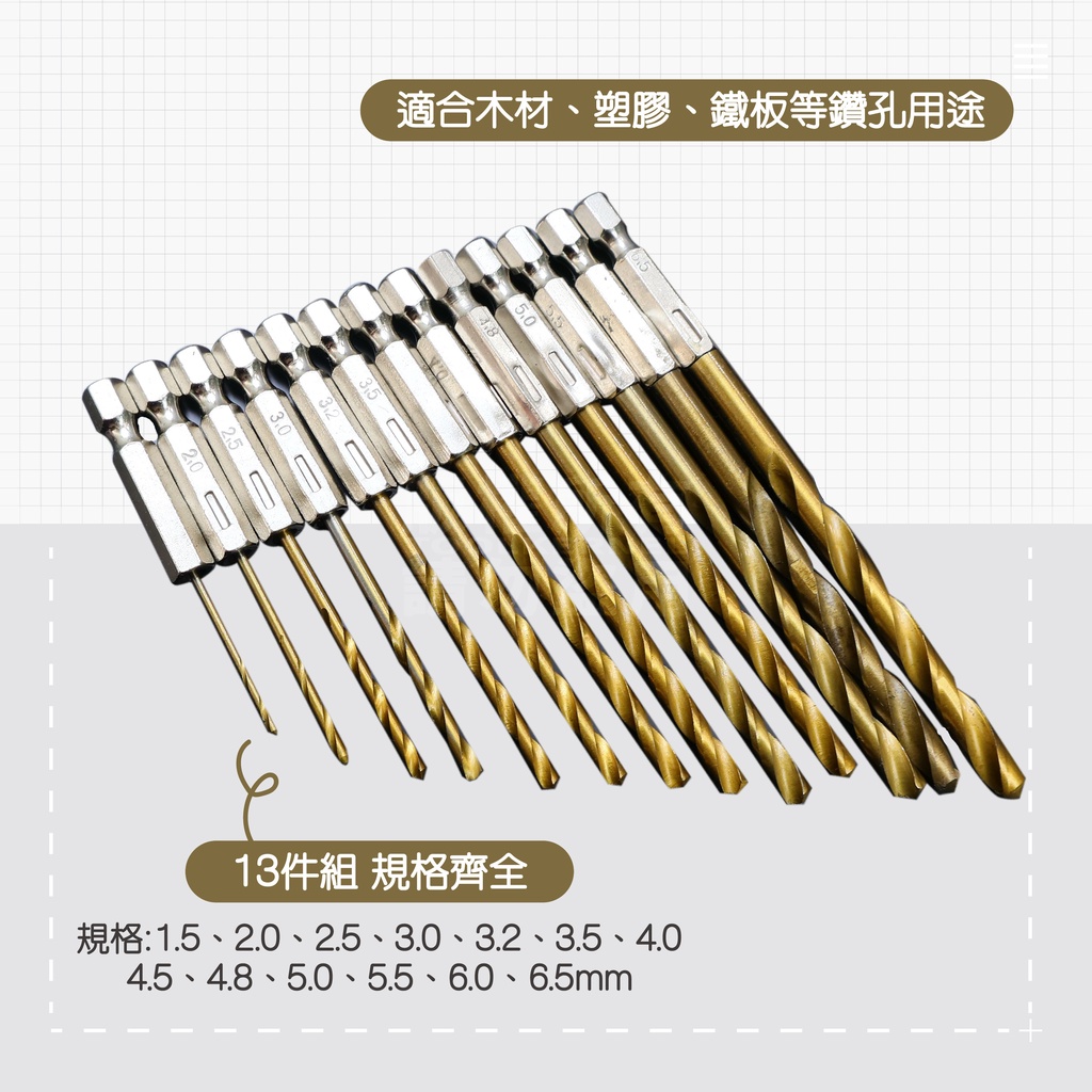 「工具仁」13入鍍鈦六角頭鑽尾組 高速鋼材 衝擊起子機 電鑽夾頭 1/4"快速接頭 鑽木材 塑膠 鐵 附發票