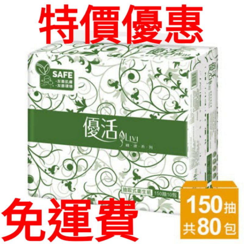 電子發票免運費【Livi 優活】抽取式衛生紙優活150抽80包/72包/100抽80包/100抽72包/100抽60包