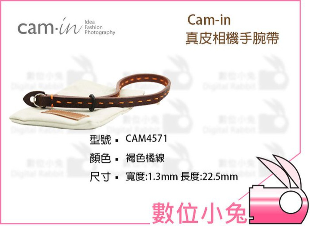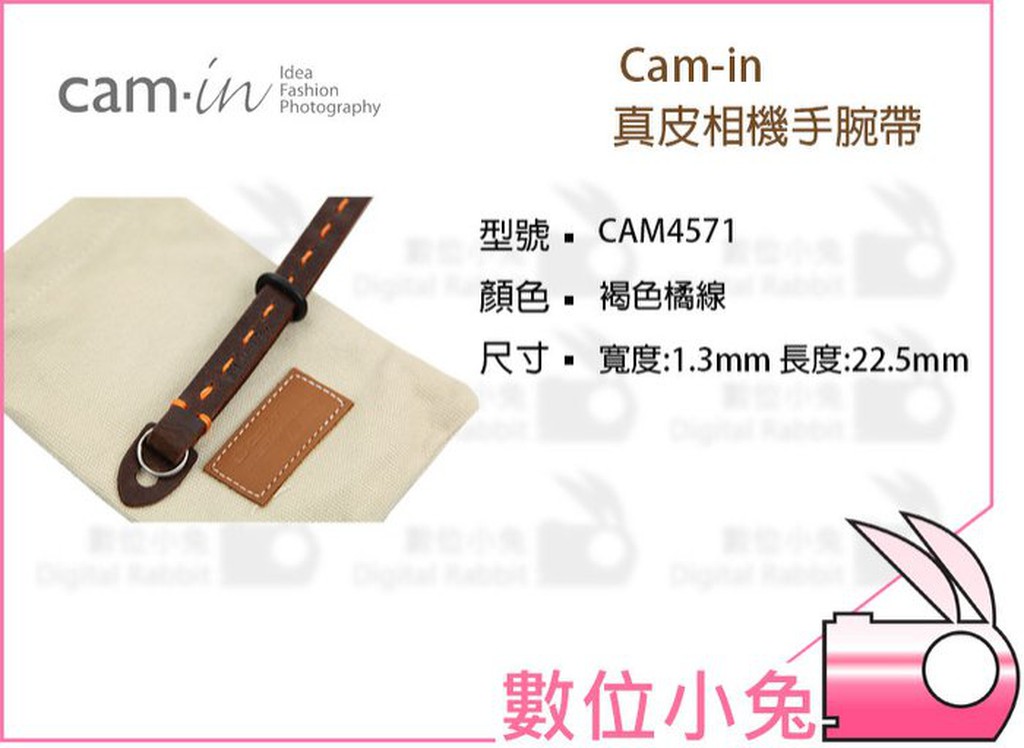 數位小兔【Cam in 真皮相機手腕帶CAM4571/褐色橘線】義大利牛皮 相機手腕帶 真皮皮革 公司貨