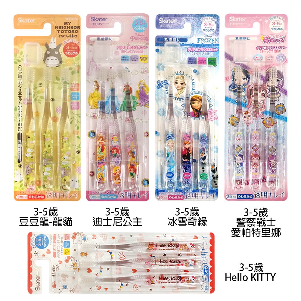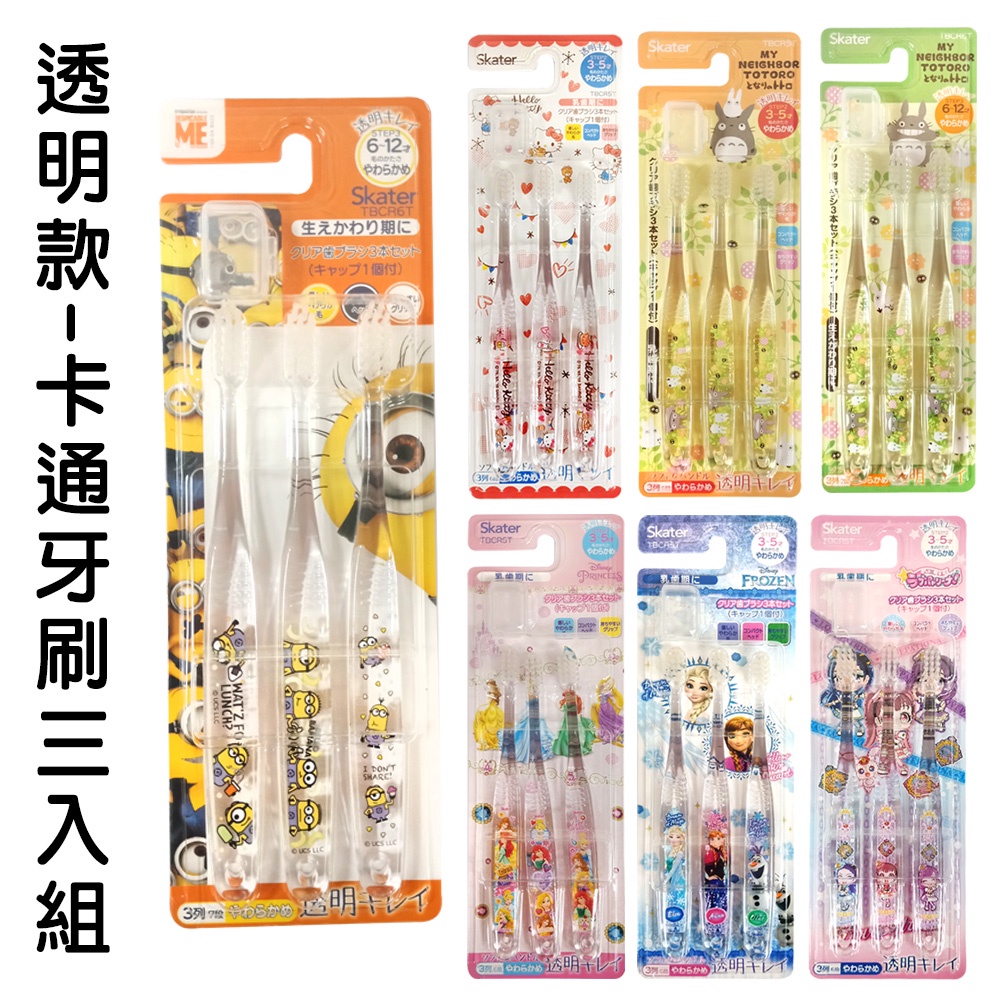 日本 SKATER 0-12歲【透明款】兒童 卡通牙刷 角落生物 迪士尼 軟毛牙刷 三入組 多款任選