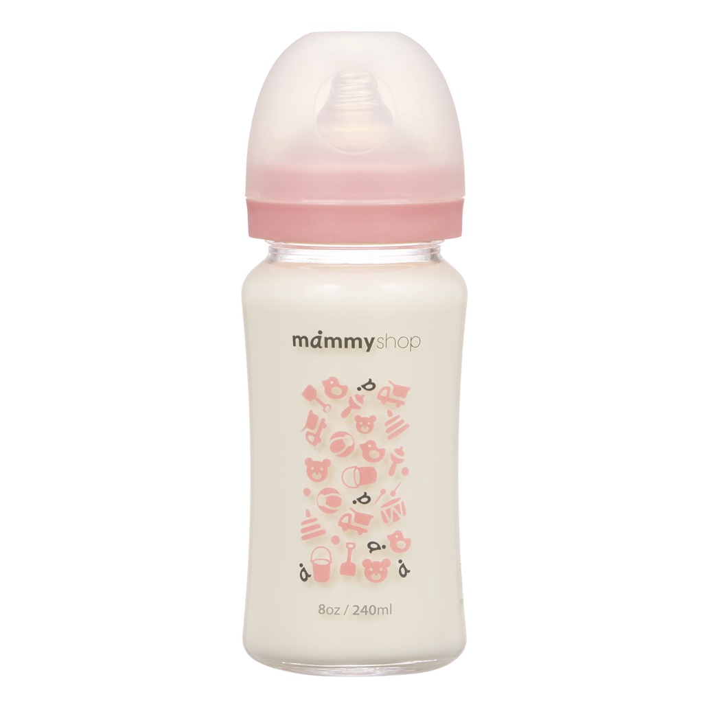 媽咪小站母感「新版2.5」玻璃奶瓶-寬口240ml(奶嘴尺寸:十字M).超取一單最多12支