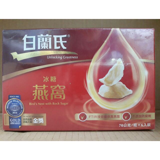 白蘭氏冰糖燕窩70g6入裝(15882)售868元 賞味期2026 4月
