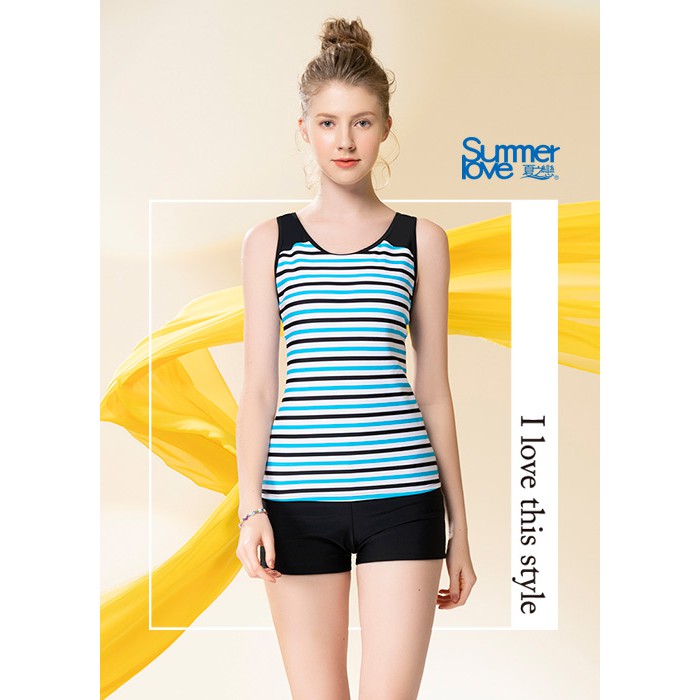 【Summer Love 夏之戀】加大碼清爽藍色系長版二件式泳裝-S21704