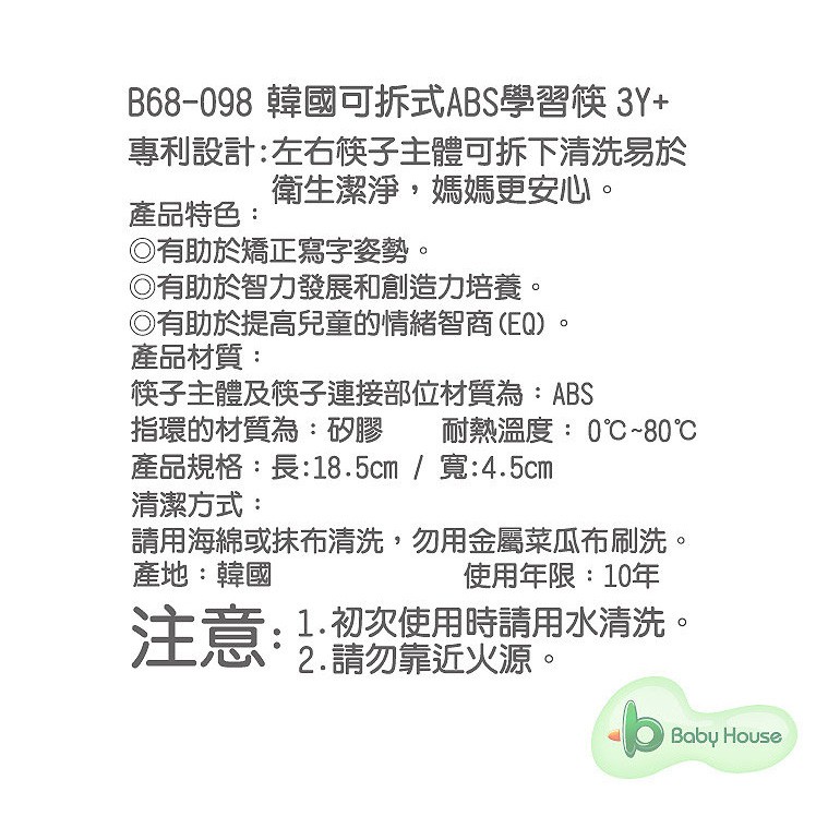 [ Baby House ] 韓國可拆式ABS學習筷/筷子 3Y+ 詹姆士(紅)<愛兒房