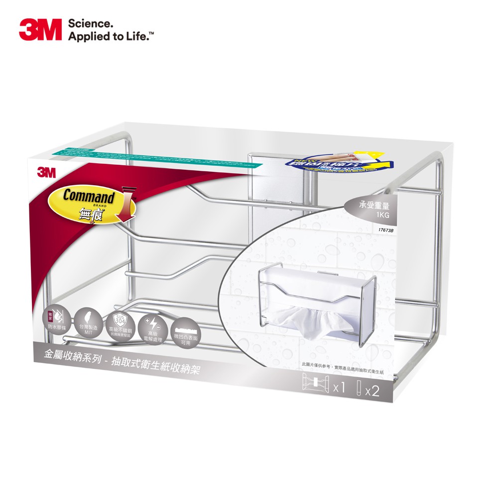 3M 無痕 304金屬防水收納-浴室免鑽 抽取式衛生紙收納架