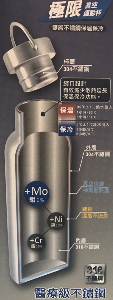 維嘉 316極限真空運動杯 不鏽鋼 真空 運動杯 保溫杯 #316 水壺 手提 保冰 保溫【CF-05A-12270】