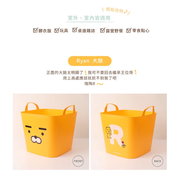 Kakao Friends塑膠收納籃- Norns 正版 Ryan 萊恩 Apeach 桃子 收納箱 玩具箱 居家收納盒