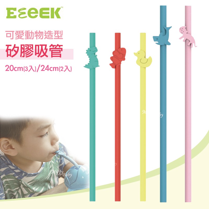 艾克【eeeek】可愛動物造型矽膠吸管(20cm/24cm) 環保吸管 矽膠吸管-miffybaby