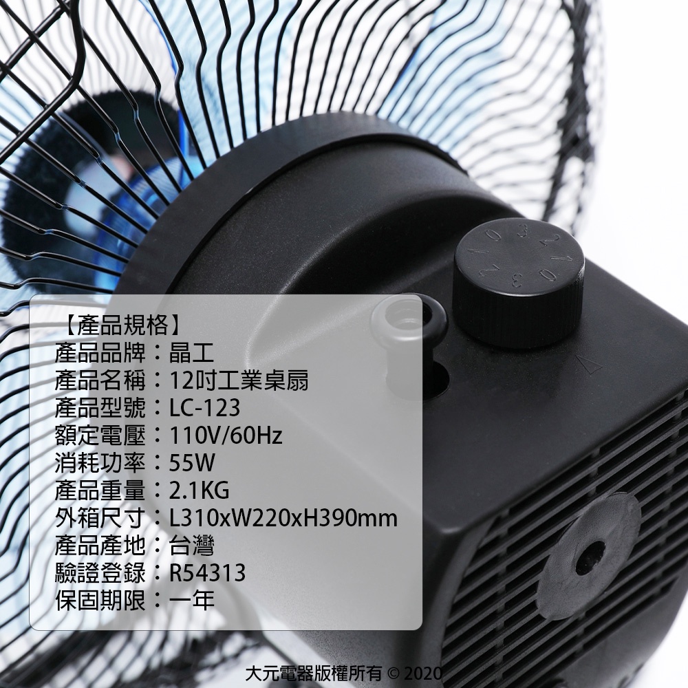 【超取限一台】晶工 12吋3D擺頭循環桌扇 LC-123