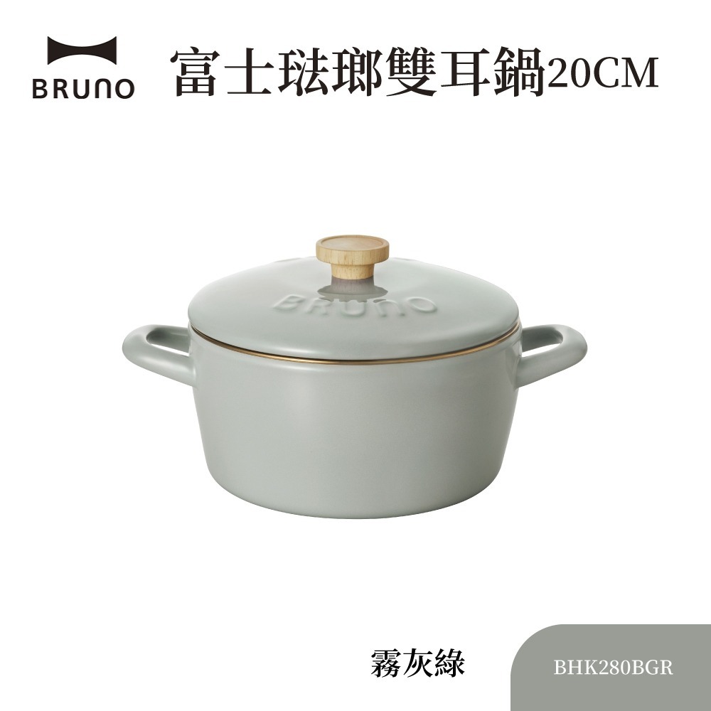 【日本BRUNO】富士琺瑯雙耳鍋 20CM 霧灰綠|經典琺瑯鍋|耐用高品質|IH爐可用