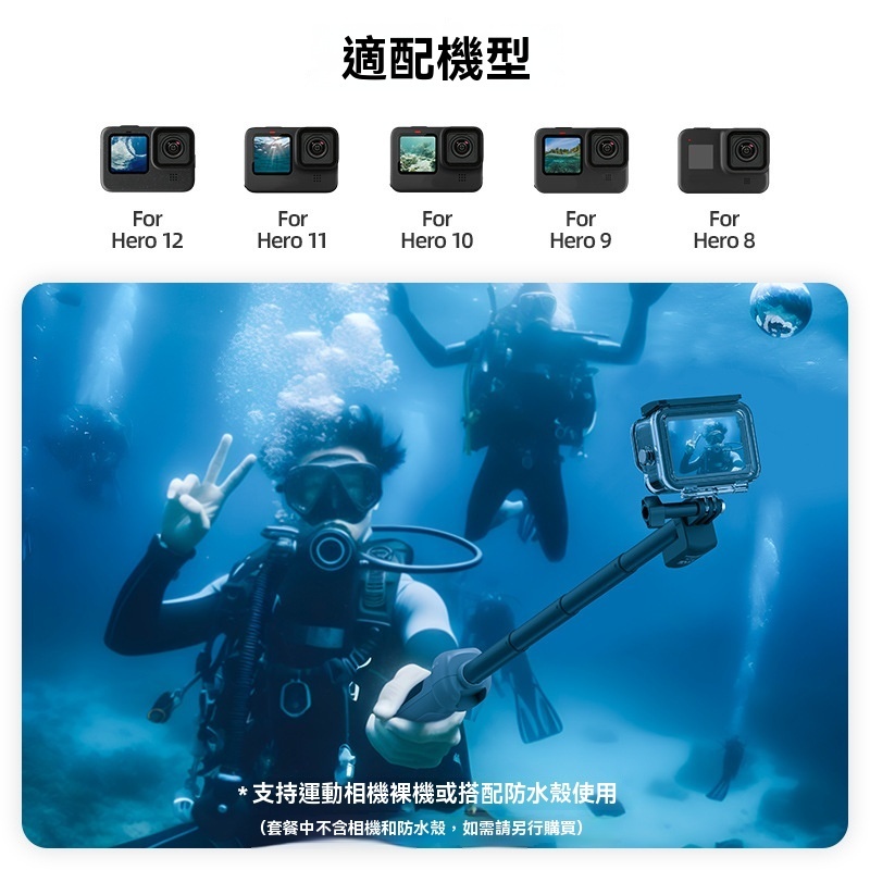 ❥适配GoPro12/11/10水下遥控自拍杆30米防水潜水her o9/8