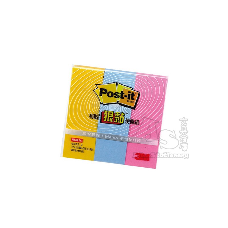 狠黏可再貼便條紙 631S-2 631S-3 利貼 3M Post-it AS文具倉庫 便利貼 便條紙 狠黏 利貼