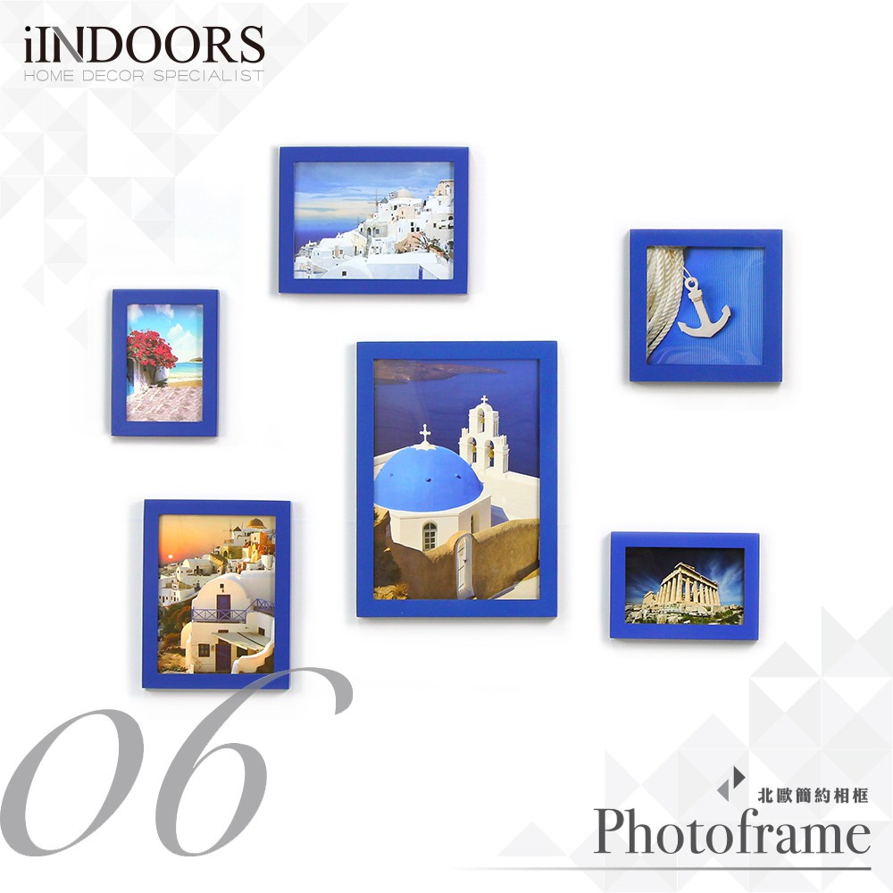 英倫家居 北歐實木相框牆 藍色6入組合 送德國黏土 風格圖卡 壁貼 室內設計 餐廳 畫框 照片牆 創意 裝飾佈置