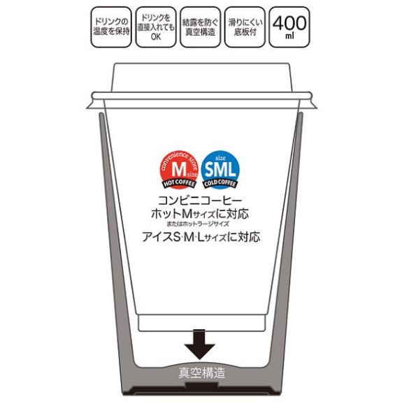 skater 真空二層構造 卡通 便利店咖啡不銹鋼隨行杯 M 400ml STCV2
