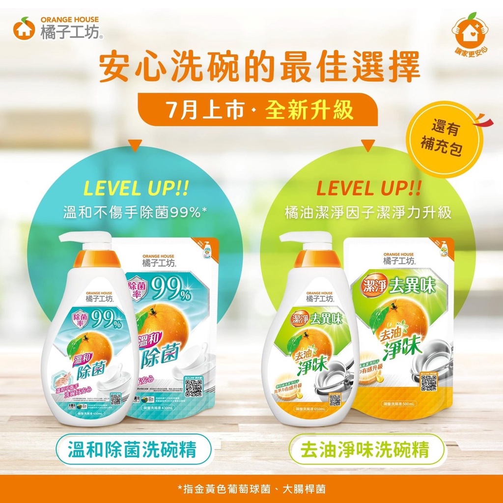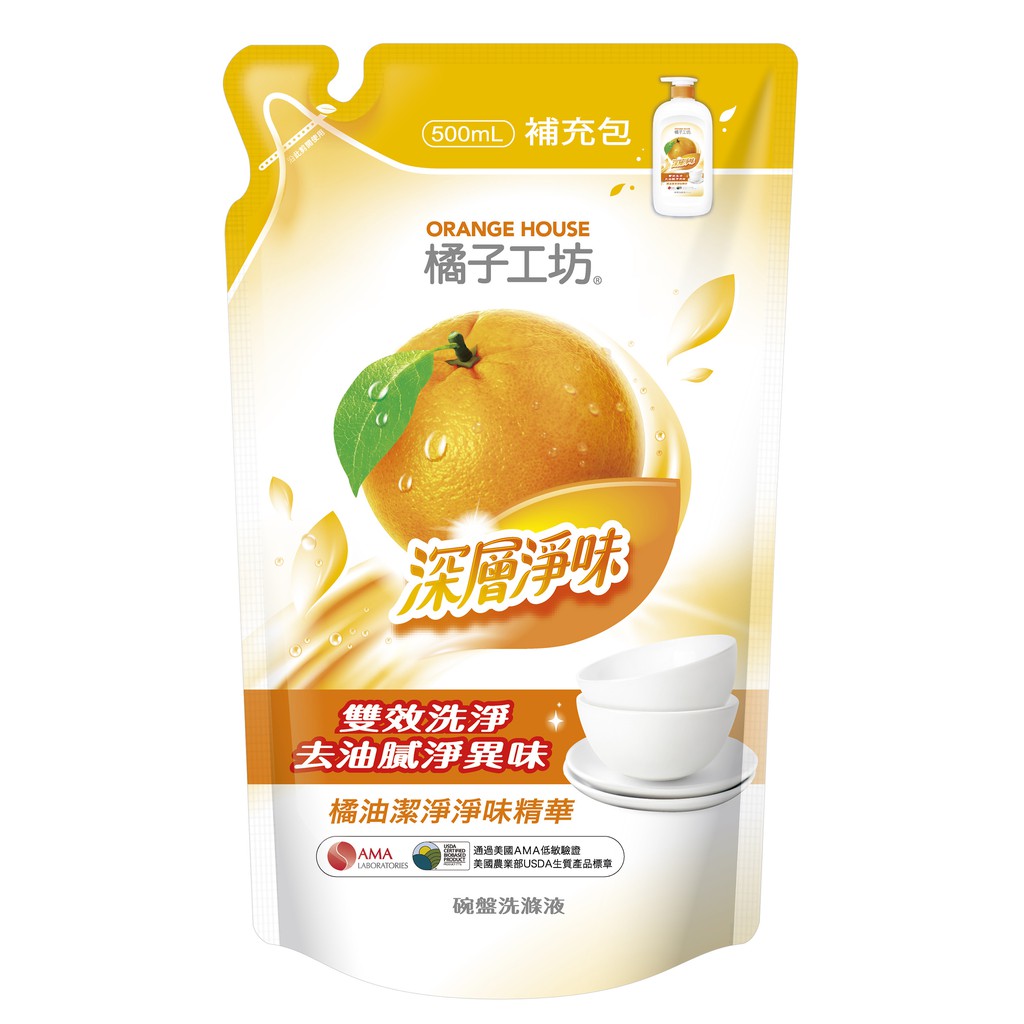 橘子工坊 碗盤洗滌液/洗潔精/洗碗精 深層淨味 補充包500ml 全新包裝上市 出貨以主圖為主 2022年製造新品