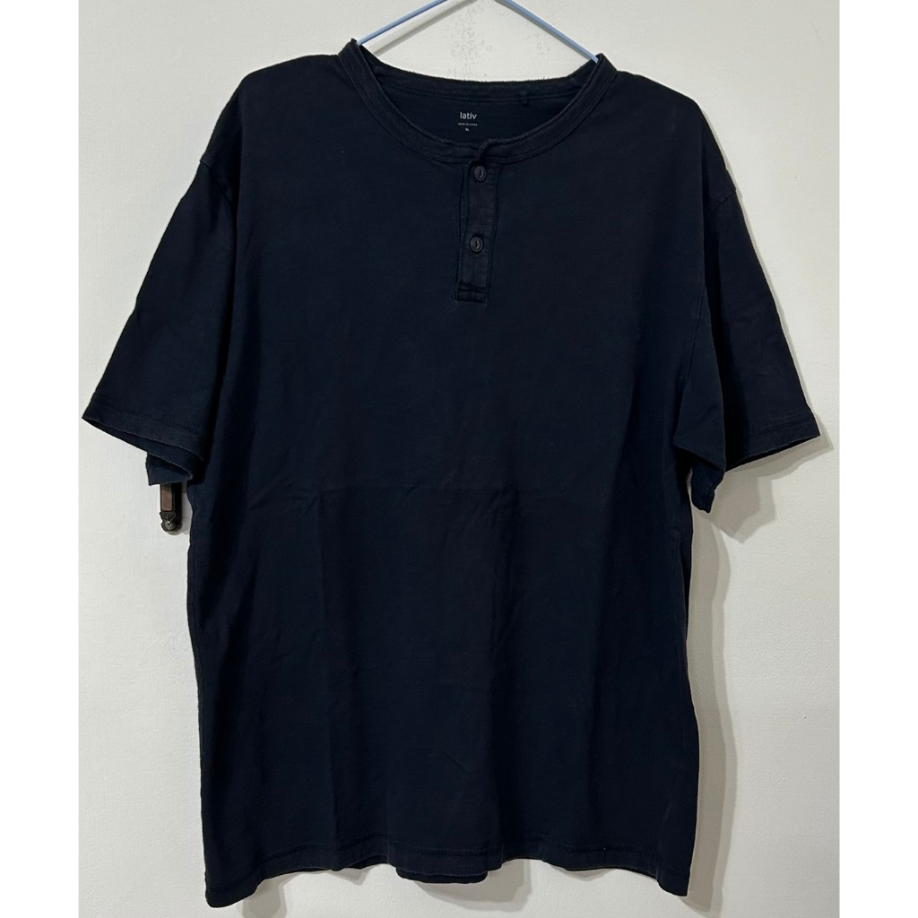 Lativ 竹節棉亨利領T恤男 男短袖T恤 XL號