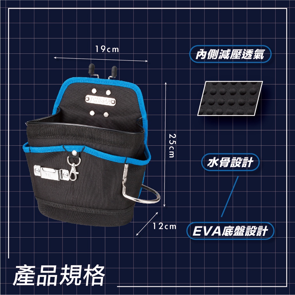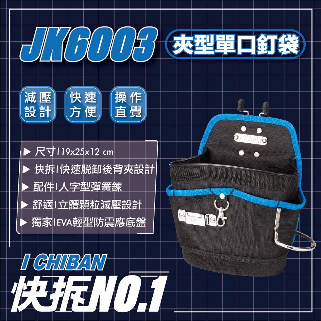 ICHIBAN 一番|【快拆系列】JK6003 夾型單口釘袋 工具袋 工具腰包 減壓設計