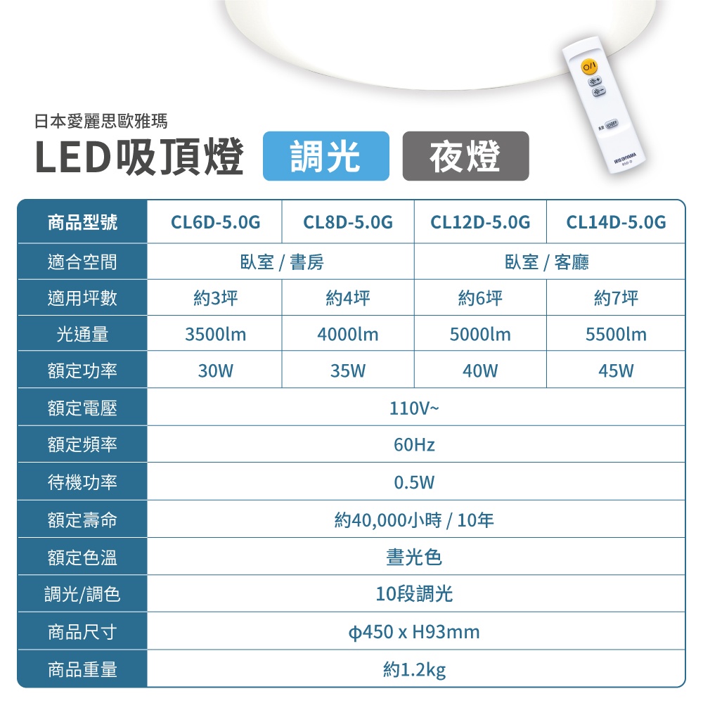 IRIS OHYAMA 可調光LED吸頂燈 CL6D-5.0(30W/3坪適用)