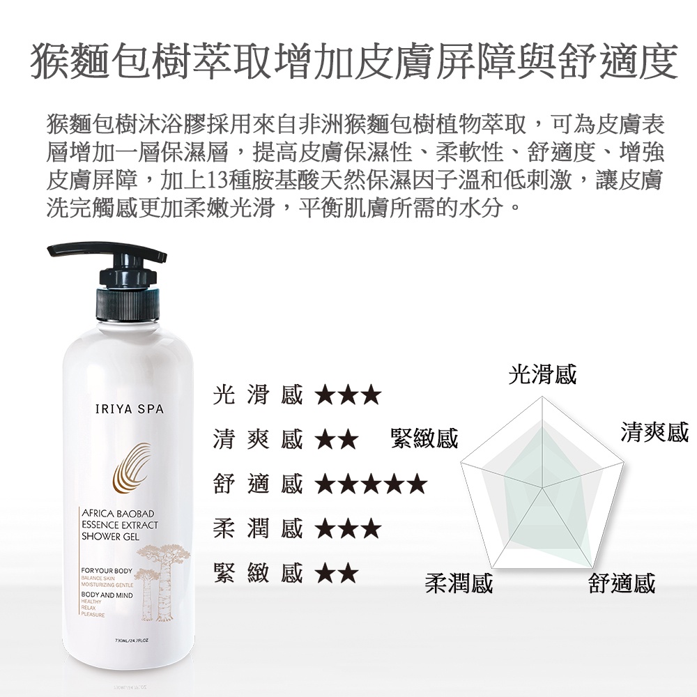 IRIYA伊麗雅猴麵包樹平衡沐浴膠730ML(買大送小)
