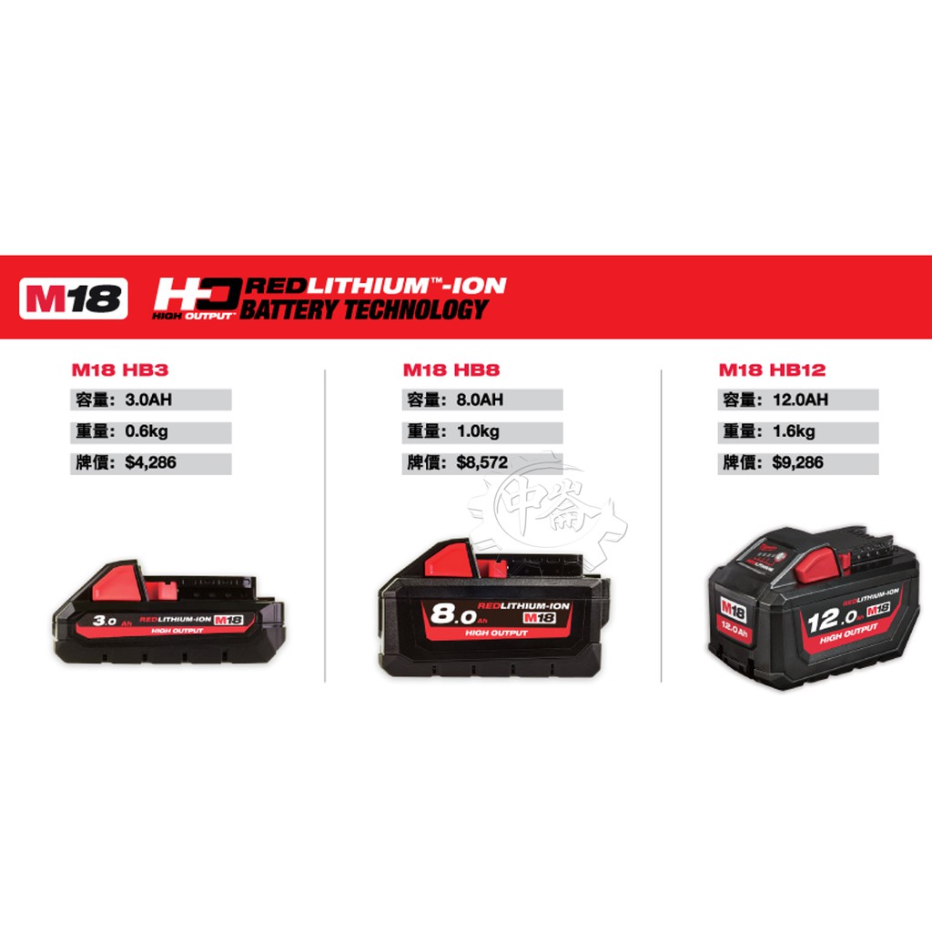 *中崙五金*【附發票】美沃奇 Milwaukee 18V 3.0AH鋰電高輸出電池 M18HB3+M12-18FC