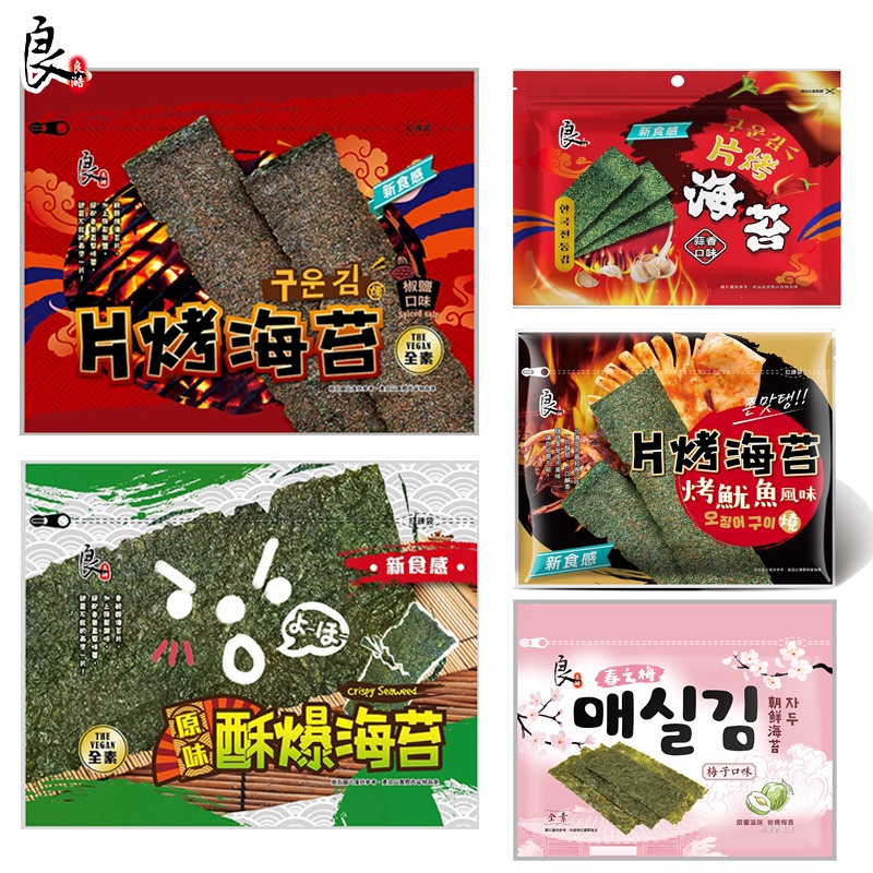 良澔 片烤海苔 酥爆海苔 無調味海苔 烤魷魚【零食圈】日式 無調味 片烤 椒鹽酥爆海苔 海苔 零食