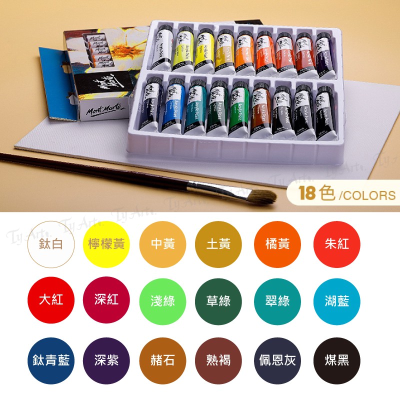 ●同央美術網購 澳洲 Mont Marte 蒙瑪特 蒙馬特12色盒裝 壓克力顏料套組12色 24色12ml PMHS00