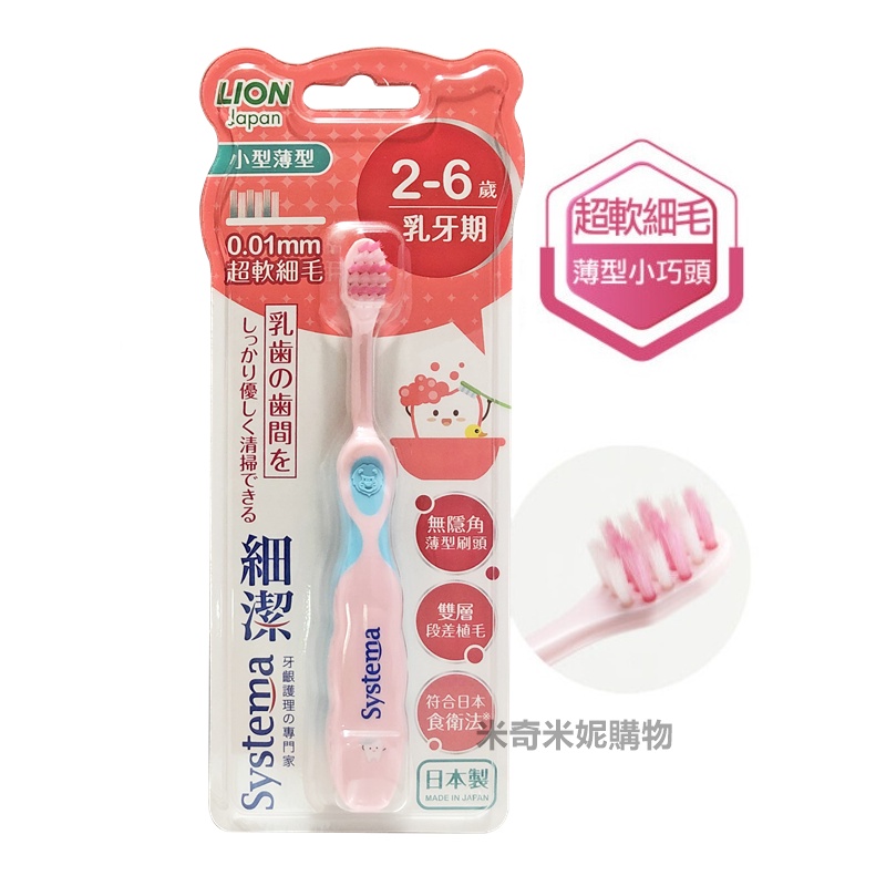 LION 獅王 細潔兒童專業護理牙刷 0-8個月 6個月-2歲 2-6歲 6-9歲 藍/粉 原廠公司貨