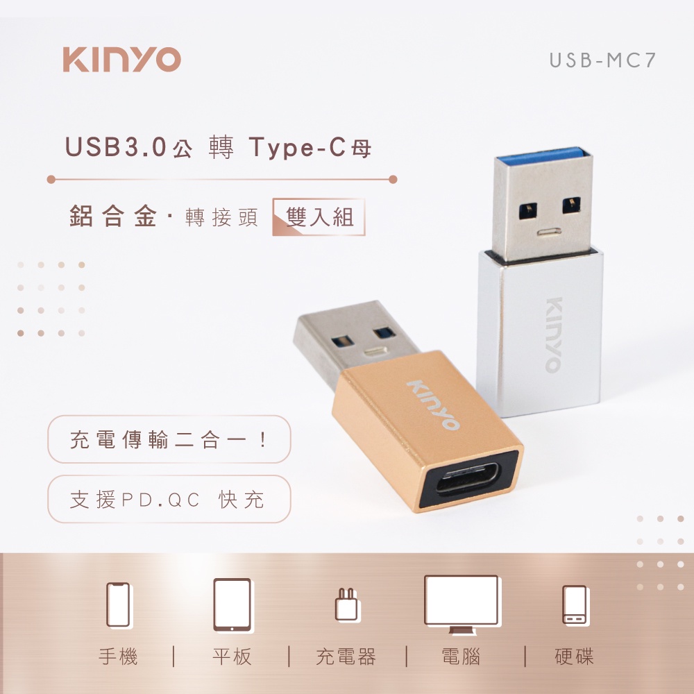 〖KINYO〗 USB3.0公轉Type-C母 雙入 (USBMC)