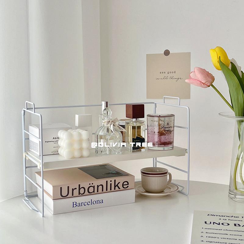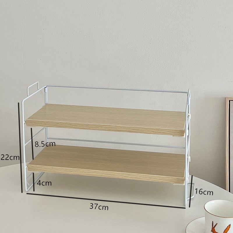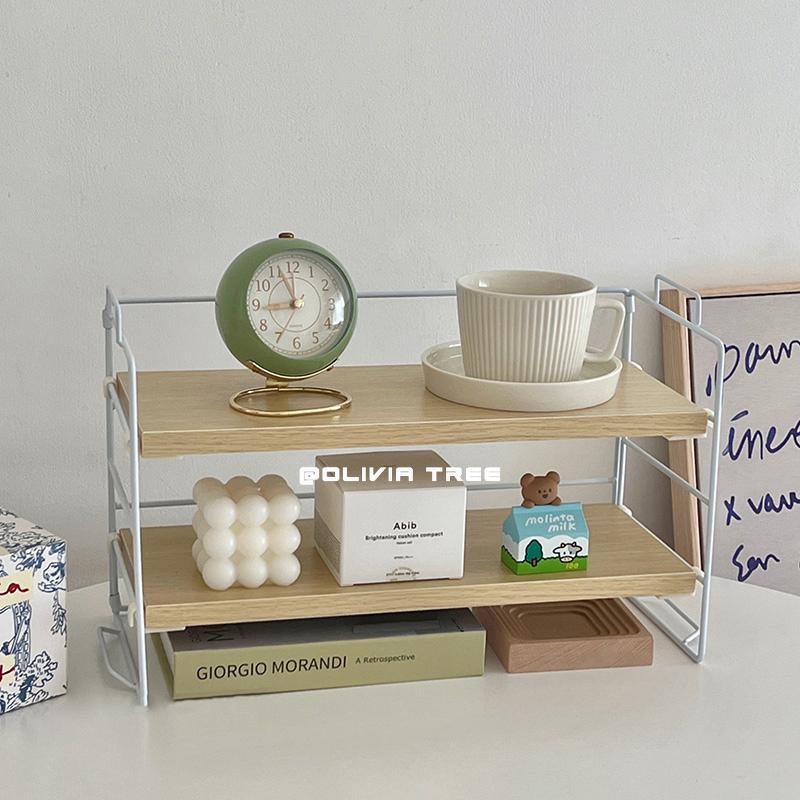 Ins Style 鍛鐵木製台式化妝品多層儲物架宿舍臥室桌子香水整理架