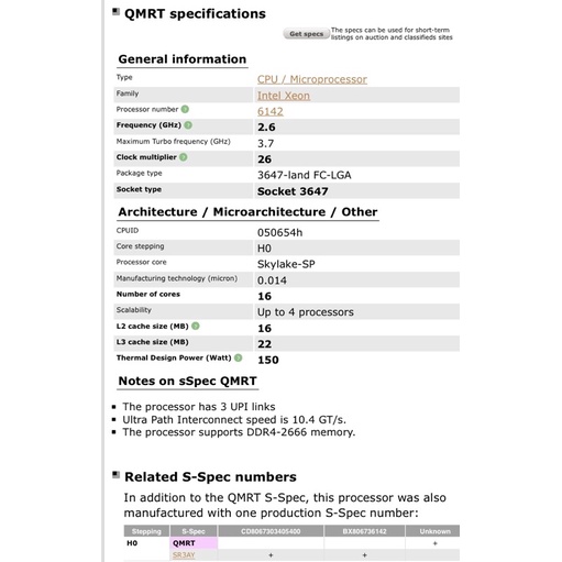Intel Xeon Gold 6142 2.6G 16C32T 模擬32核心 3647處理器 QMRT QS