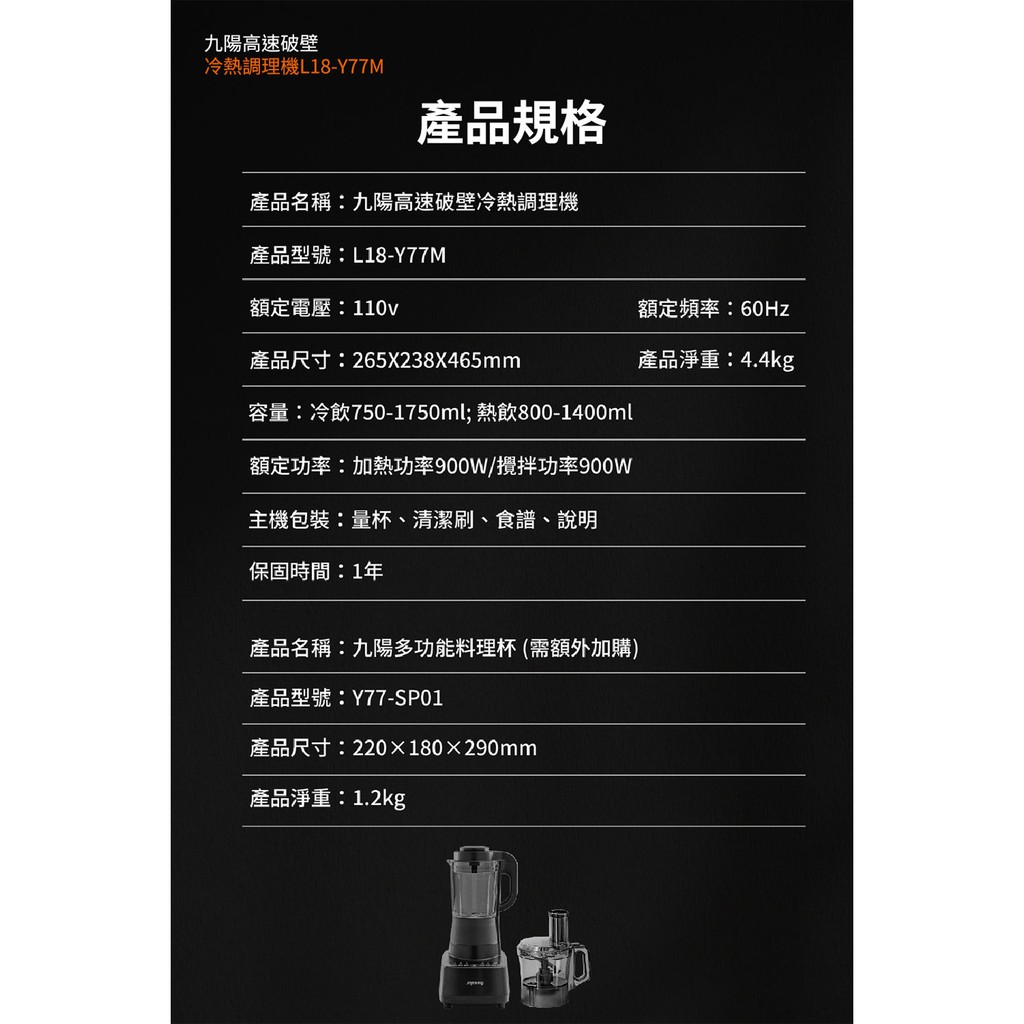 Joyoung九陽 高速破壁冷熱全營養調理機L18-Y77M (送專用多功能料理杯Y77M-SP01) 現貨 廠商直送
