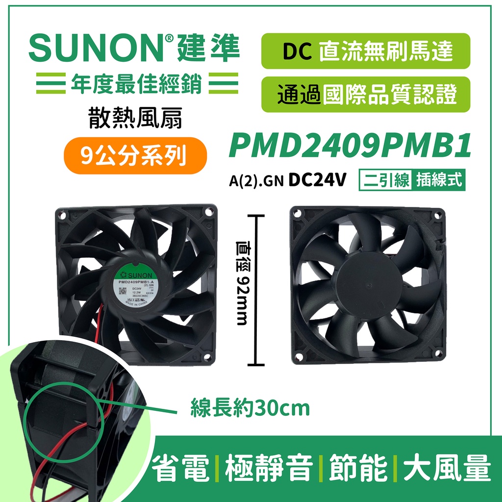 SUNON│建準 ★DC散熱風扇92mm★ PMD2409PMB1-A (2).GN/插線式/原廠授權經銷