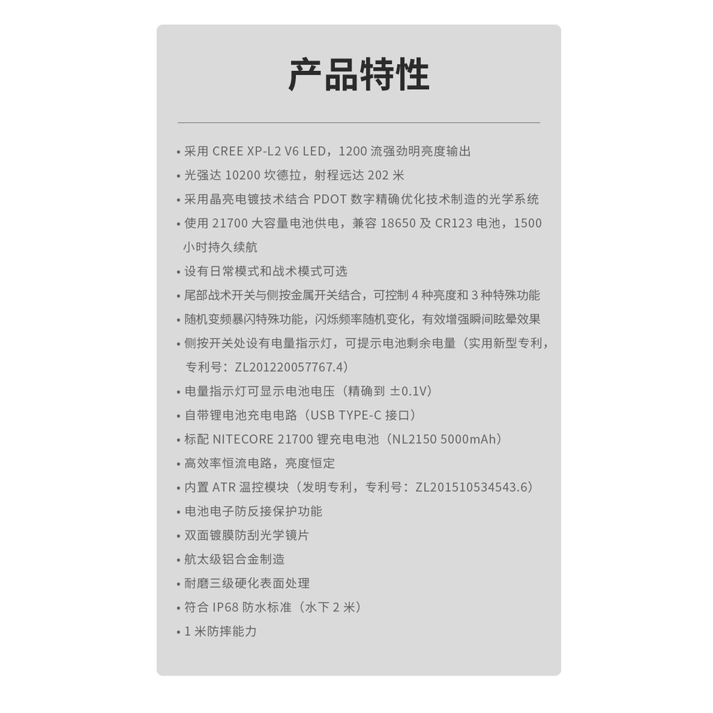 【電筒王】Nitecore MH12 V2 1200流明 強光type c 直充 21700 超長續航防身小直 手電筒