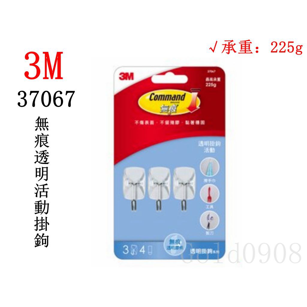 3M 37067 無痕透明活動掛鉤 承重225g 無痕掛勾 好卸除 不留殘膠 正品現貨