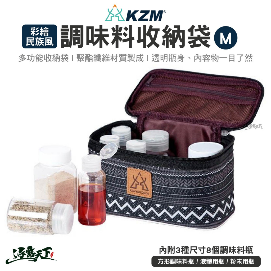 KAZMI KZM 彩繪民族風調味料收納袋(M) 8件組 調味料 收納包 收納袋 露營收納 露營逐露天下