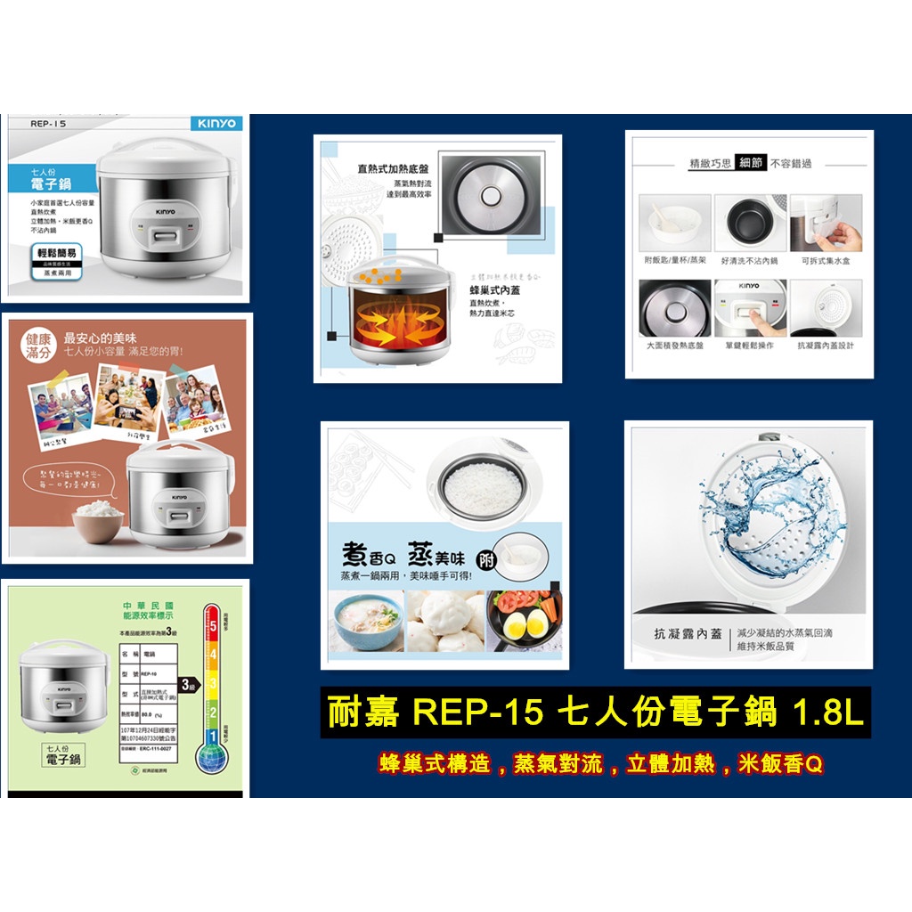 KINYO耐嘉 REP-15 七人份電子鍋 1.8L 電鍋 飯鍋 機械式 不沾塗層內鍋 自動保溫 蒸煮鍋 炊飯鍋 附蒸盤